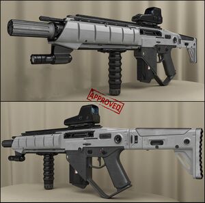 Da die Waffe auf dem galaktischen Waffenmarkt für alle Organisationen und Gruppierungen verfügbar ist und nicht exklusiv verkauft wird, ist die Schulterstütze für die unterschiedlichen Vorlieben und Eigenschaften des Schützen einstellbar. Schließlich sollen so viele Humanoide wie möglich die Waffe tragen und benutzen können, um eine möglichst große Bandbreite an Trägern zu ermöglichen.