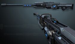 Die Firma Merr-Sonn, bekannt durch ihren durchschlagskräftigen Blaster M-434 DeathHammer, schlug im Bereich der Scharfschützengewehre einen vollkommen unpopulären Weg ein und ließ das Prinzip des gasbetriebenen Blastergewehrs fallen. In Zusammenarbeit mit einigen imperialen Militärs begann die Firma damit, die Wirkungsweise der bekannten Hypervelocity Gun auf ein sehr viel kleineres Format anzupassen. Ein wichtiger Punkt, der zur Abkehr vom traditionellen Blastergewehr führte, war die Tatsache, dass hochrangige Ziele meist einen Personenschutzschild tragen und so einen fast undurchdringlichen Schutz vor Blasterschüssen besitzen. Aus diesem Grund entschied man sich dazu, eine Projektilwaffe zu nutzen, da Energieschilde keine festen Objekte abwehren können und daher keinen Schutz gegen derartige Waffen bieten.