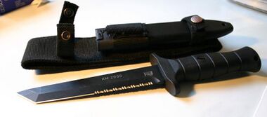 Dieses moderne Kampfmesser wurde nicht nur als Waffe sondern, da der Nahkampf militärisch an Bedeutung verloren hat, auch als robustes Mehrzweckwerkzeug entworfen. Es besitzt daher eine breite, einseitig geschliffen Klinge. Die Vermutung, modernste Werkzeugtechnik würde solch eine Funktion überflüssig machen, ist ein weit verbreiteter Irrtum. Hochspezialisierte Werkzeuge sind oft sehr störanfällig und für den Fronteinsatz wenig zu gebrauchen, weil z.B. Laserwerkzeuge weithin sichtbar sind und eine optimale Tarnung zunichte machen würden. Daher besitzt die KM 2000 Ausführung der Army, eine geschwärzte Klinge um weit sichtbare Lichtreflexionen zu vermeiden. Weiterhin ist die KM 2000 mit einfachsten Zusatzfunktionen ausgestattet. Eine Sägezahnung im Rücken ermöglicht das leichtere Durchtrennen von Holz und vielen anderen Materialien. Ein hohler Griff dient zur wassergeschützten Aufbewahrung kleiner Gegenstände.