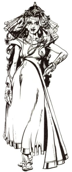 In der öffentlichkeit, so wie die Mehrheit der hapanischen Aristokratie, trägt sie einen Schleier. Sie ist ruhig, intelligent und rücksichtslos. Zu ihrem Bedauern hat sie keinen weiblichen Nachkommen und der erste Sohn erwies sich als Schwächling und Pazifist, also arrangierte sie einen Anschlag auf ihn. Der zweite Sohn war der schöne und kriegerische Prinz Isolder; bei ihm fingen die Probleme an, als er sich eine Frau suchen sollte. Die erste, in die er sich verliebte, die Lady Ellian, wurde ebenfalls auf Befehl von Ta`a Chume umgebracht und zwar aus den verschiedensten Gründen.