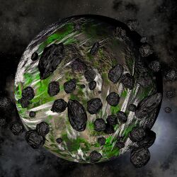Der Mond ist das einzige was im System neben einem Asteroidenfeld exisitert. Von was er genau in seiner Umlaufbahn gehalten wird, ist unbekannt. Durch die Nähe zu den Überresten des Planeten wird die Oberfläche des Mondes regelmäßig Einschlägen von Meteoriden ausgesetzt.