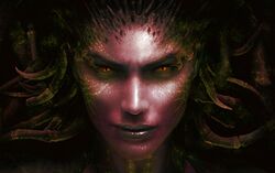Mit 1,66m Körpergröße ist Raven eine kleine Vertreterin ihrer Spezies. Ihr Gewicht pendelt um die 55kg. Von der Statur her ist sie definitiv als athletisch zu bezeichnen, schließlich ist sie einige Zeit Sportlerin gewesen und trainiert weiterhin, wenn auch vor anderen Hintergründen. Wie bei allen Falleen ist ihre Haut von giftigem bis frühlingshaftem Grün und ihre Wirbelsäule wird durch eine Reihe knöcherner Auswüchse, die teilweise in überaus scharfen Zacken enden, auf dem Rücken markiert. Ebenso besitzt sie, rassentypisch, je vier Finger und Zehen, die durch spitze, dunkle Nägel verlängert werden. Ihr edles, anmutiges Gesicht wird durch feine, fast straffe Züge geprägt. Die Wangenknochen sitzen hoch und die Wangen fallen unter ihnen leicht ein, erwecken aber nicht den Eindruck eines hohen Alters, sondern verstärken die Strenge, die ihr Anblick ausdrückt. Die vollen Lippen sind von dunklem Blau, die Augen von goldgelber Farbe. Von ihrer Stirn wölben sich zwei Wülste den Kopf entlang zu ihrem Haaransatz und unter diesem weiter, während sich blauschwarze, seidige Wellen in einem düsteren Meer über ihren Rücken ergießen, nachdem ihr Haar nach einem Strahlenunfall nachgewachsen ist. Ein anderes, auffallendes Merkmal der Falleen sind die fehlenden Ohren, da die Hörorgane in der Kopfhaut liegen. Insgesamt hinterlässt die selbstsichere Reptiloide einen strengen bis drakonischen, nicht selten auch arroganten, aber wohl auch exotisch anziehenden Eindruck.